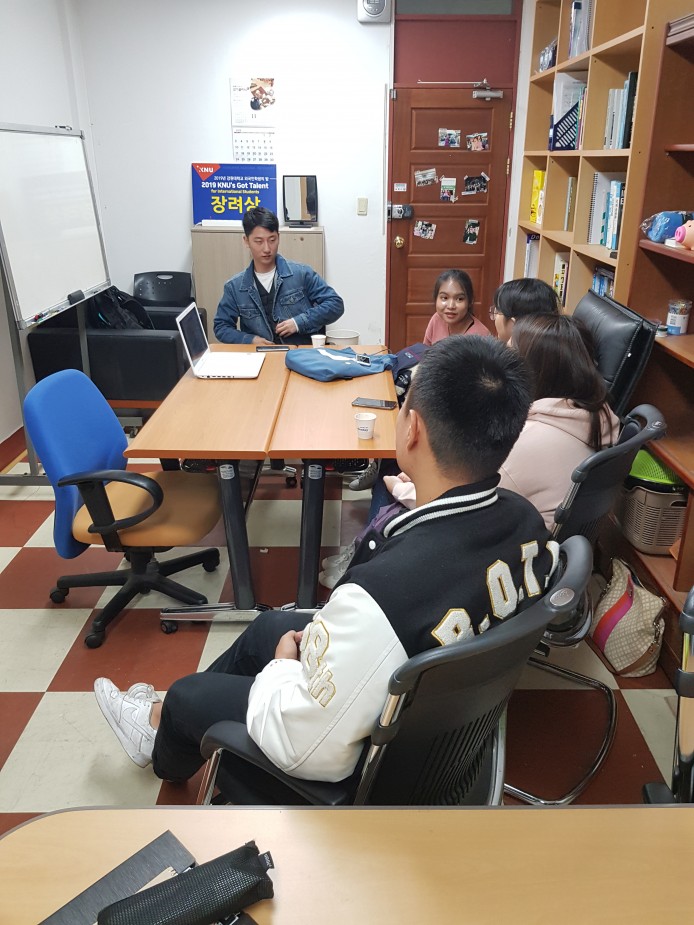 2019 AIMS Fall : Language Study group 페이지 정보 작성자 : AIMS 날짜 : 작성일19-11-29 10:13 조회 : 59,140회 이전 다음 목록 본문 Korean outbound students -> teaching KoreanInbound students -> teach their languages 이전 다음 목록